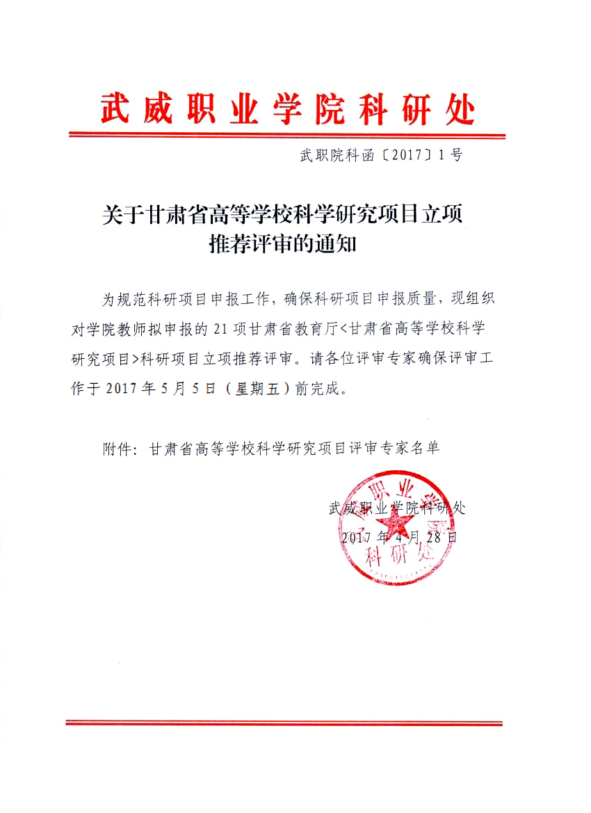 關(guān)于甘肅省高等學??茖W研究項目立項推薦評審的通知