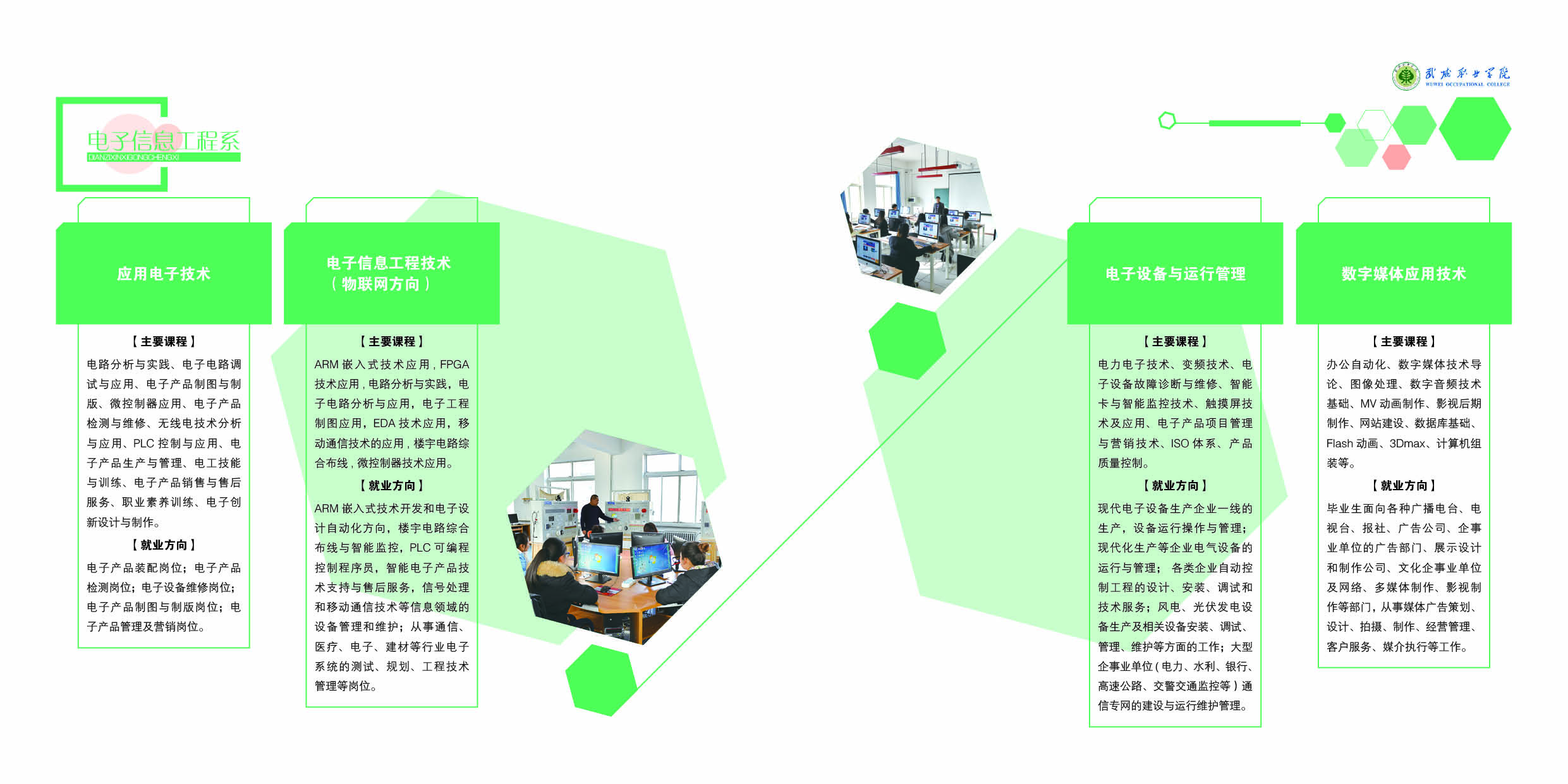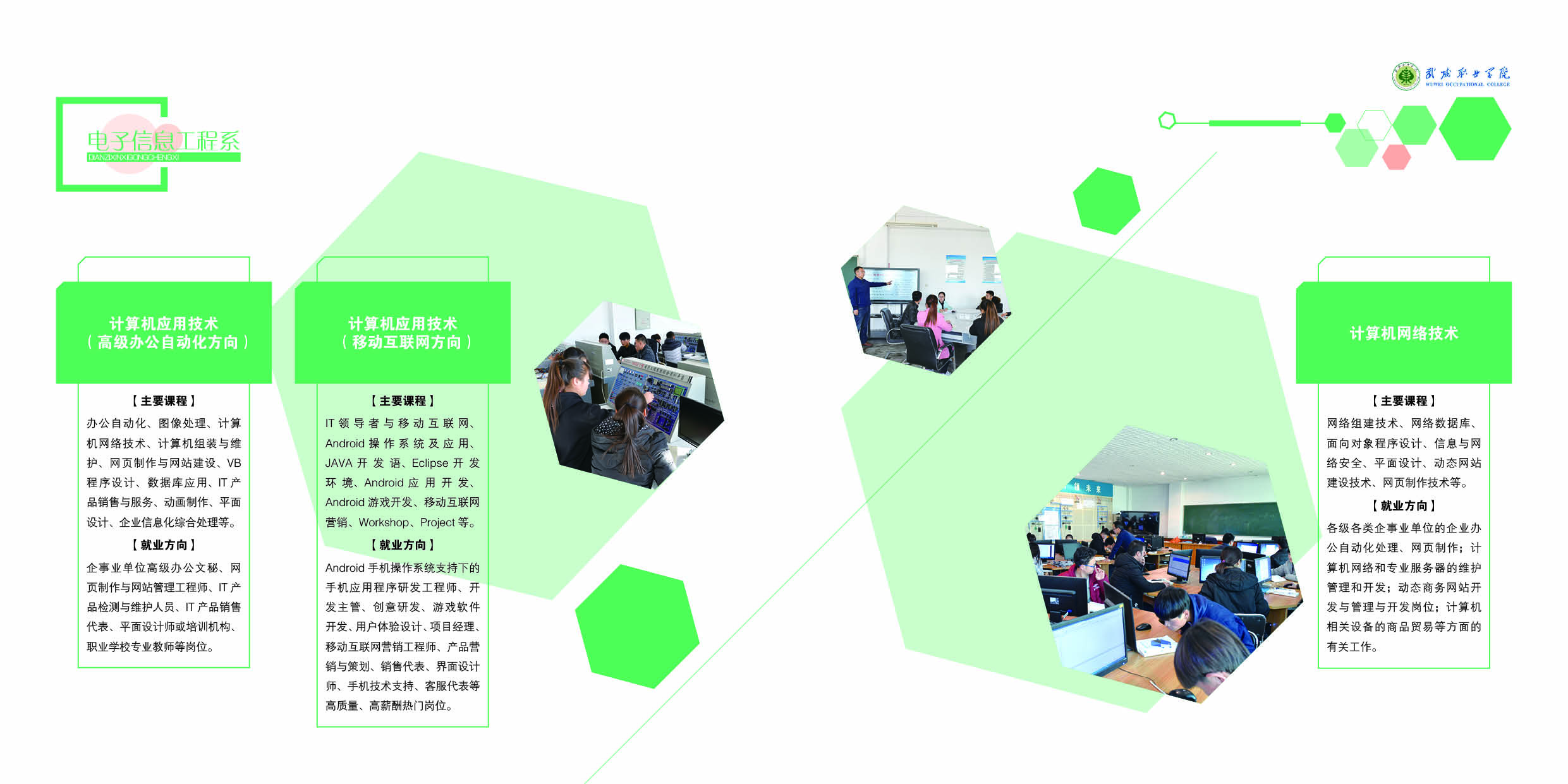 主要課程:辦公自動化、圖像處理、計算機網絡技術、計算機組裝與維護、網頁制作與網站建設、VB程序設計、數據庫應用、IT產品銷售與服務、動畫制作、平面設計、企業(yè)信息化綜合處理等。