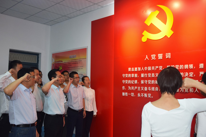 “我志愿加入中國共產(chǎn)黨,擁護(hù)黨的綱領(lǐng),遵守黨的章程……” 全體黨員同志在任陶的帶領(lǐng)下,鄭重地舉起右手,面對鮮紅的黨旗再次莊嚴(yán)宣誓。誓詞擲地有聲,鏗鏘有力,讓全院黨員同志得到了一次思想洗禮,一次精神激勵。任陶指出,重溫入黨誓詞,是“兩學(xué)一做”學(xué)習(xí)教育的重要內(nèi)容,是黨性的再熏陶、再教育,目的在于立起黨員的標(biāo)桿來,喚起“入黨為什么”“在黨干什么”的重新思考。