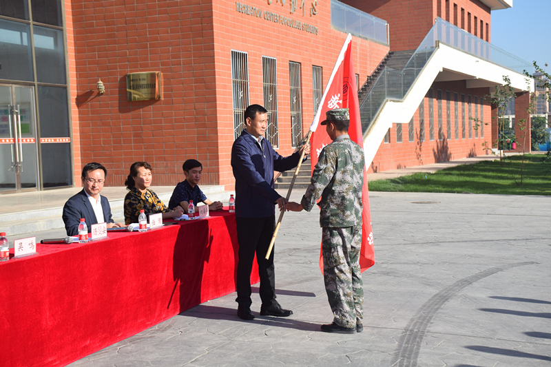 動員大會在莊嚴的國歌聲中開始,學(xué)院學(xué)工辦負責(zé)人劉菊萍就訓(xùn)練時間、訓(xùn)練紀(jì)律要求等方面做了具體的安排。軍訓(xùn)教官代表王雯和新生代表張林旺分別發(fā)言表態(tài)。湯旻安代表學(xué)院在會上作了軍訓(xùn)動員講話。他強調(diào),同學(xué)們要在軍訓(xùn)過程中要提高認識、端正態(tài)度,真正把軍訓(xùn)作為大學(xué)生的一門必修課;刻苦訓(xùn)練、認真學(xué)習(xí),在訓(xùn)練中樹立不怕苦、不怕累的精神,確保訓(xùn)練效果;嚴格要求、強化管理,確保軍訓(xùn)工作緊張、有序、安全;講文明樹新風(fēng)、除陋習(xí)展形象,樹立良好風(fēng)尚,展示新時代大學(xué)生的風(fēng)采;以人為本、科學(xué)施訓(xùn),確保軍訓(xùn)工作取得實效。最后,由湯旻安向軍訓(xùn)教官授旗,標(biāo)志著2017級新生軍訓(xùn)正式拉開帷幕。