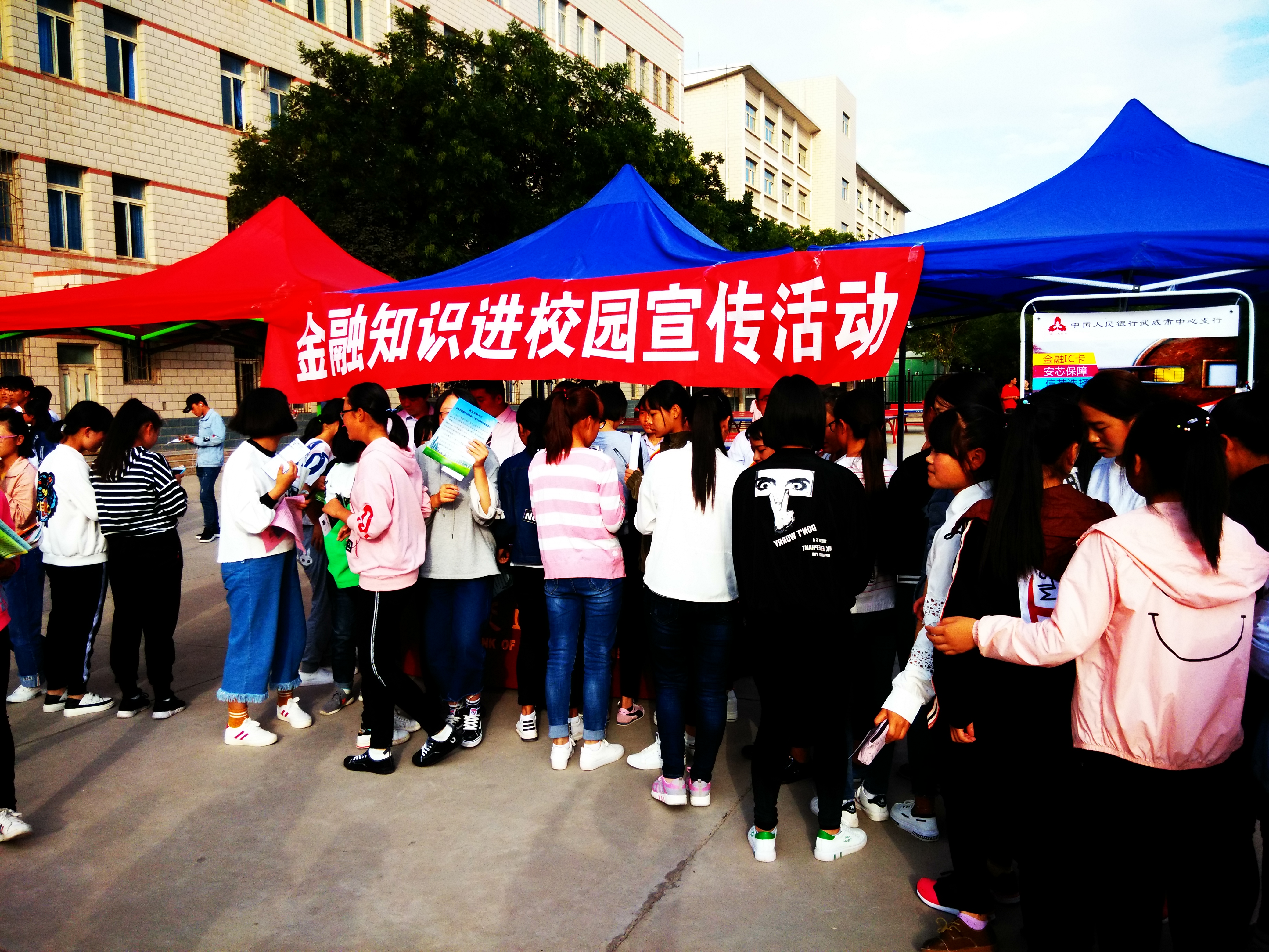 為幫助和引導大學生群體牢固樹立金融安全意識,9月21日下午,學生工作處邀請中國人民銀行武威分行、武威農商銀行、交通銀行武威分行在學院尚德樓南操場開展了“送金融知識進校園”宣傳活動,全院學生積極響應號召,有1000余人參加了此次活動。