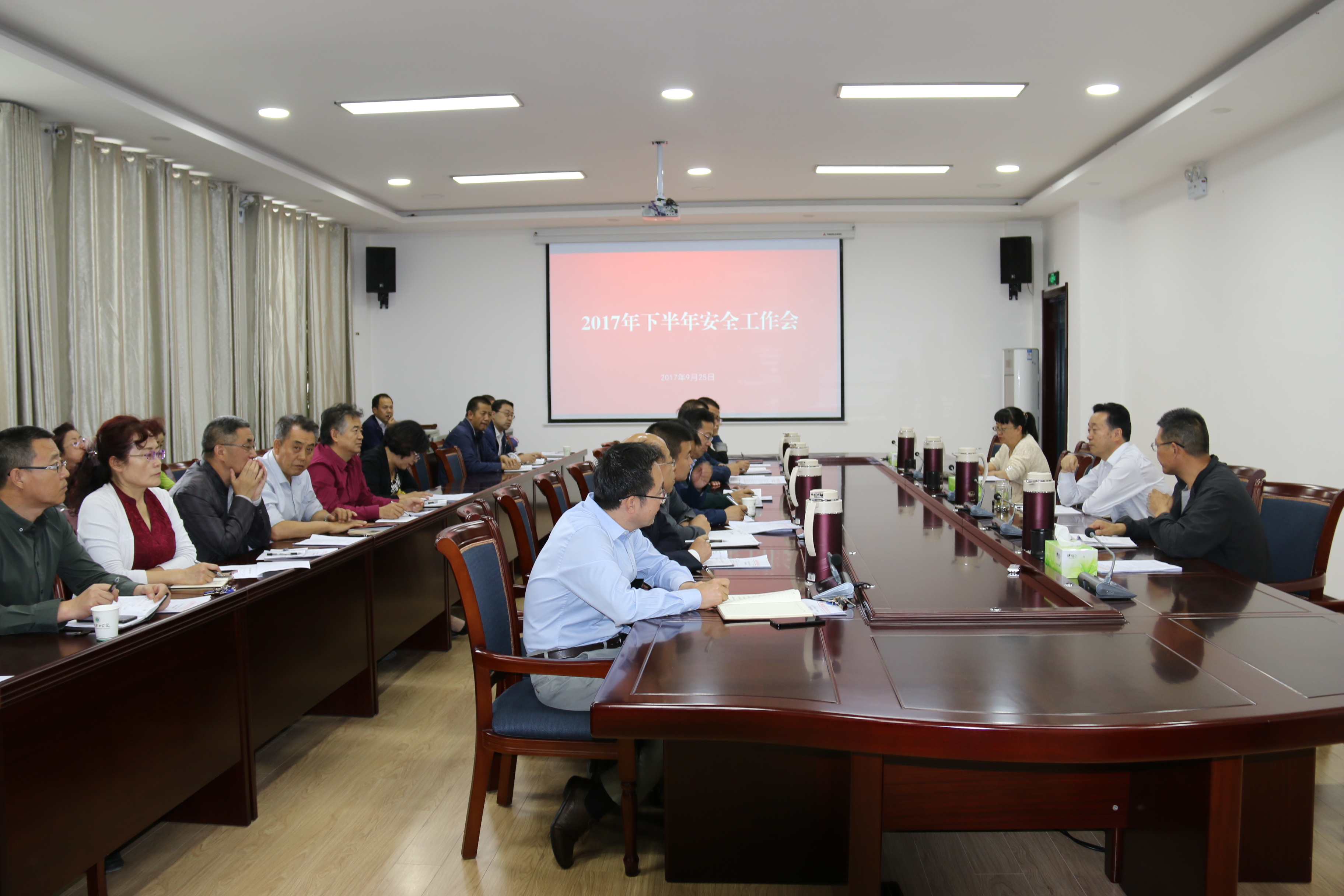 9月25日下午,學院召開2017年下半年安全工作會議,院長宗瑞謙,副院長王永緒、田迎春出席會議,學院各部門、單位負責同志參加會議。