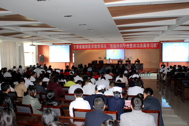 2017年10月28日早上8.30分,直屬附屬醫(yī)院在內(nèi)科七樓會議室舉辦的省級繼續(xù)教育項目:胃腸外科中西醫(yī)診治進(jìn)展學(xué)習(xí)班,蘭州大學(xué)第二醫(yī)院兩位胃腸病外科專家作學(xué)術(shù)講座。