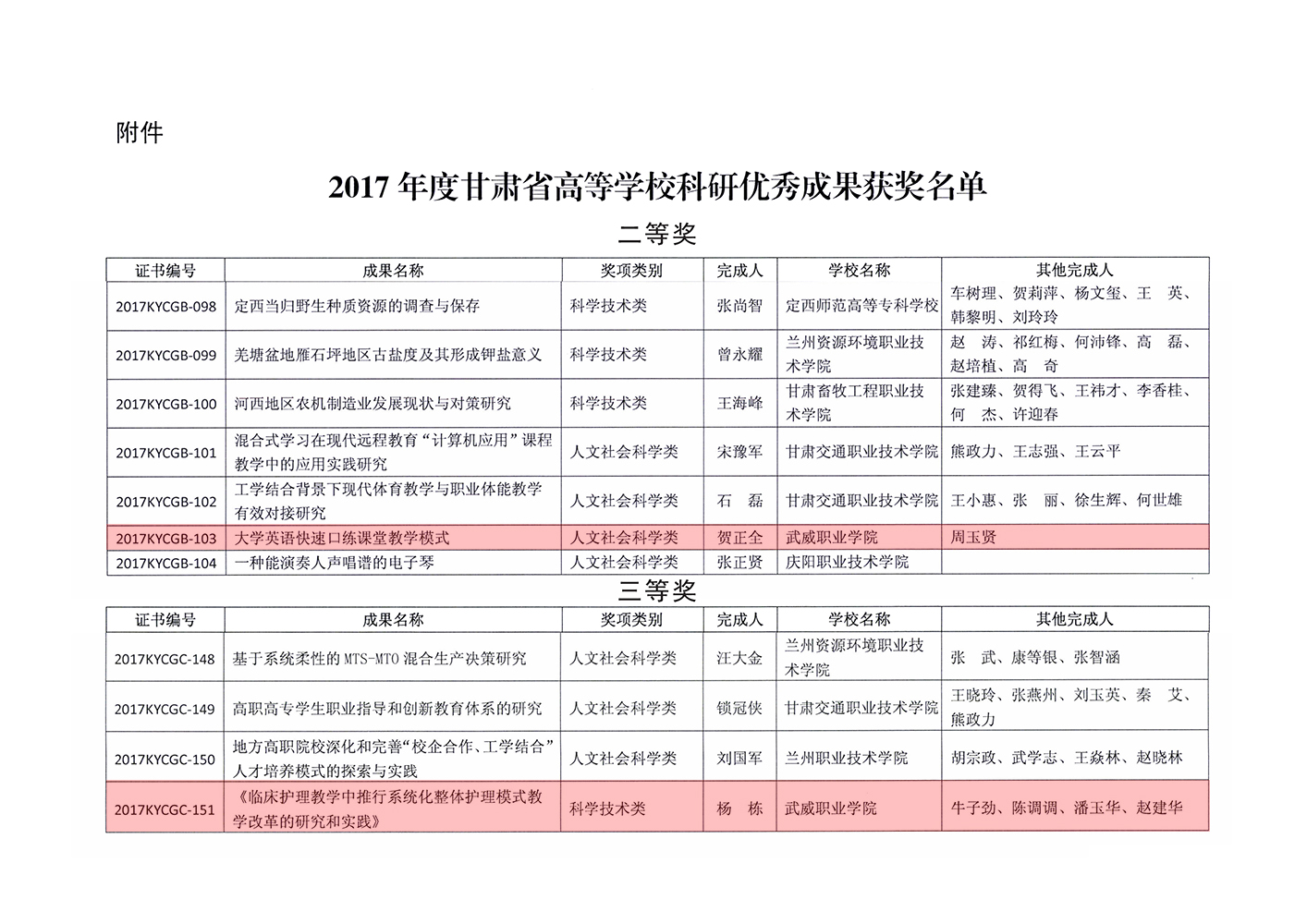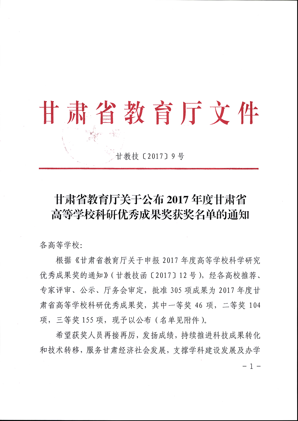 轉(zhuǎn)發(fā)甘肅省教育廳關于公布2017年度甘肅省高等學??蒲袃?yōu)秀成果獎獲獎名單的通知